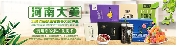 河南大美生物科技股份有限公司是從事顆粒劑、(固體飲料類),壓片糖果代加工等研發(fā)和銷售為一體的生產(chǎn)企業(yè)。公司依托自身的高科技研發(fā)隊伍和營銷團隊,為國內(nèi)外客戶提供營養(yǎng)食品各劑型和規(guī)格的研制、生產(chǎn)、配方設(shè)計、批文申報等服務(wù),并為客戶提供多種形式的流通渠道及產(chǎn)品銷售服務(wù)工作。 您的要求就是我們的使命!我們的宗旨是與客戶“合作共贏,攜手向前”,共同創(chuàng)造事業(yè)新的輝煌!